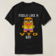 My 11 yo wore adult XL (5’7” 165#). The 8yo is small framed. She wore adult small and tied it in the back. Grandma wore adult large with long sleeve shirt underneath. Tall girl adult medium. Dark haired male adult large. Good quality dark Heather gray, Gildan brand shirt. -it was next up from basic choice and cost about $20 per shirt. Not too thick or thin. Washed and dried well, no major shrinkage. Not see-through. Can wear a bra under it fine. Screen print is just as shown and well done, front and back.