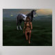 Fantasy art amazon huntress with a pinto horse in the mountains fantasy art poster. Customize