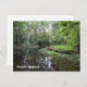 Postcard featuring a photo of a canoe on water in the Amazon Rainforest in South America.