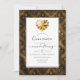 Amber gemstone with black and gold rose damask background and elegant handwriting typography. A sparkling grunge vintage damask reverse compliments the scenario for a glitzy affair.