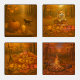 Celebrate the glow and charm of autumn with this four-piece coaster set inspired by Radiant Prints’ Amber Hours Collection. Each coaster captures a different facet of the season — bonfire gatherings, playful leaf-jumping moments, golden forest pathways, and curious woodland companions.