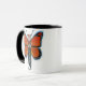 Amber the Monarch Butterfly, dramatic on a black handle mug.