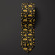 This amber yellow floral on black neck tie shimmers like gold, making it an ideal accessory for a groomsman, a businessman, or any one with a refined sense of fashion.