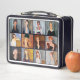 This is a standard metal lunchbox that appears to work just fine. We designed this box ourselves with an uploaded photo and custom text on the front and back. It looks absolutely beautiful except the front of the lunchbox is not centered like it shows in the photo. The print borders don't align with the inset flat part of the box where the preview photo online showed it perfectly centered in there. The back looks nice and centered though.