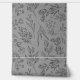 This floral botanical flower dark gray and black wallpaper is perfect for a modern bedroom, kitchen, bathroom or accent wall. The design features a tossed pattern of line art florals and is customizable in any color in the design view.
