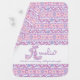Letter A monogram name meaning hearts and flowers baby girl blanket. Ideal for a personalized gift for a new baby girl who has a name that starts with the letter A. This example reads Amelia Industrious, hard working, intelligent and energetic or you can customize the text with your own name and words or date of birth if required. Makes a unique new baby, baby naming, christening or another baby celebration gift. If you need help with your own personalized name please contact me. © Letter A typographical hearts and flowers doodle drawing and pattern in pastel shades of pink, purple and aqua blue is uniquely created by Sarah Trett. www.sarahtrett.com for www.mylittleeden.com