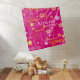 Pretty text graphic name baby girl blanket in shades of pink, yellow and white. Ideal for a personalized gift for a new baby girl. This example reads Amelia or you can customize the text with your own name and choice of background color currently pink. Makes a unique new baby, baby shower, 1st birthday, christening or another baby celebration gift. © flowers and graphic typographic pattern created by Sarah Trett. www.sarahtrett.com for www.mylittleeden.com