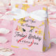 Delight your guests with this adorable Pink and Gold Star Birthday Celebration Favor Box, personalized for Amelia's 25th Birthday. The design features a charming pastel pink background, repeating yellow happy birthday stars, and a festive graphic collage including a party hat, cupcake, and stage setup. This Thank You For Coming box is perfect for holding treats, confetti, or small gifts for any girl's milestone celebration, whether it's a Sweet 16, 25th, or adult birthday party. The box is tied with an elegant white satin ribbon.
