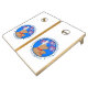 Natural Wood Cornhole Set, Royal Blue and Yellow bags