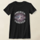 This magnificent America Forever design incorporates the American flag on an iconic tri-star emblem. It is illustrated in a photo-realistic style backed by a soft radial gradient burst. The text is rendered in a glossy brushed steel typeface. A striking piece for any American or fan of American culture.