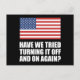 Have We Tried Turning It Off And On Again? This funny American political humor accessory is great for anyone who follows news and current events, and is concerned about the polarization of America's divided politics. Great gift for anyone who appreciates political satire and sarcastic quotes. America doesn't seem to be working right now, maybe we need to treat it like an IT computer problem and turn it off & back on again? Features typographic text & an American flag.