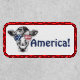 Fun iron on patch features one hip cow... black and white illustration of cow face with aviator style sunglasses and USA flag lenses, and customizable "America!" text. Great apparel for Memorial Day, Independence Day, Labor Day, Election Day...or just any day of the week ending in y.