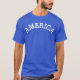 AMERICA in a unique font is printed in white on this unisex T-Shirt. Choose your T-Shirt color and size from those available.