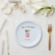 A lovely paper plate for the fourth of July, this beauty is easy to personalize. Featuring a blue and white starred background "America the Beautiful" is written in lovely blue font. Underneath is a white and red jar with red, white, and blue flowers inside. Personalize your text underneath the jar.