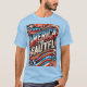 The "America the Beautiful" t-shirt design features a stunning visual tribute to American pride. A soaring bald eagle is prominently displayed, set against a vibrant backdrop of iconic landscapes, including mountains, forests, and a radiant sunset. The words "America the Beautiful" are elegantly scripted in bold, patriotic fonts, accented with subtle stars and stripes. This design combines natural beauty and national pride, making it perfect for celebrating the spirit of the USA.