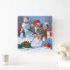 American Akita Christmas Festive Snow Scene Square Wall Clock