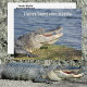 Florida wildlife - American Alligator lounging in the sun in The Everglades and on this postcard. This grinning gator appears to be smiling with a wide open mouth smile of sharp teeth. This is original wildlife photography by JLW_PHOTOGRAPHY.