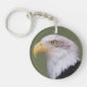 Double-sided, round, acrylic keychain that features the photo image of a Bald Eagle head.