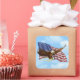 Show your patriotic side with this square sticker with an image of a waving American flag and a bald eagle in flight on a cloudy blue sky. See matching custom-cut vinyl sticker, greeting card, label, confetti and wrapping paper. See the entire Independence Day Sticker collection under the CARDS & STICKERS category in the HOLIDAYS section.