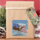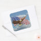 Square sticker with an image of a waving American flag and a bald eagle in flight against a cloudy blue sky. See matching custom-cut vinyl sticker, confetti, favor bag, favor box, favor tag, gift bags, label and wrapping paper. See the entire Patriotic 40s Sticker collection in the INVITES | Stickers & Labels section.