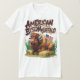 American Buffalo Bison in the black and gold text. An American bison buffalo standing in front of an American flag in the background.