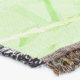 A quality printed throw has its advantages. This is a much finer weave throw than its loopier cousins, and though lighter, it is worth the investment for custom room accessorizing. The back is much prettier than the typical brown, and the fringe on the long sides very vivid, the selvage nicely done. Before photographing, I washed the throw in cold water, delicate, with a thicker woven throw the same size. On tumble dry low, this throw was dry in half the time as the other. This is a very practical quality if you use throws for furniture covers or to wrap up in frequently. The sleekness of the fabric makes it a great layer for accenting or protecting without the feeling of sitting on too much stuff. Perfect for napping or when you feel a light chill coming on. The color printing is beautiful and on this fabric, matched the design and color of my Photoshop image. This is an advantage for blending room fabrics and colors. The fringe on the short sides prints the colors from the design image and therefore varies from the side fringe. I streaked a white fractal line through the plaid pattern to give the illusion of weaving. This printed as crisp as an illusory thread, and put some white in the short side fringe, showing another advantage of print vs loomed- for artistic purposes, line lines, detail, and color integrity can be planned and preserved. My loomed throws have color limitations and more of a needlepoint texture. Print throws reproduce an exact image. The throw felt a little stiff straight out of the package, but this went away in the first delicate wash. Of course I searched the wash water for ink or bleeding and there was none.