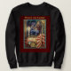 Patriotic Christmas T-Shirt with a view of the Nativity scene in a stained-glass Church window and the American Flag draped over the Bible down in front of the window. The words say "Peace on Earth" and are customizable. On the back is customizable text that says, "Merry Christmas." The shirt evokes the spirit that the USA is spreading peace throughout the world at Christmas time.