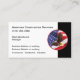 Construction business cards in a unique American patriotic theme with eagle US flag emblem and simple layout you can customize online. Designed for a business that does residential, commercial, industrial construction projects.