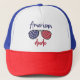 Perfect hat for 4th of July, Labor Day and other Patriotic days, or just to wear every day of the week! American Dude text in urban handwriting with Biden style aviator sunglasses in stars and stripes