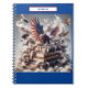 This remarkable piece of art features an American bald eagle in mid-flight, its wings majestically spread with the red and blue of the American flag painted onto them. The eagle soars above a stack of classic literature, suggesting a foundation of knowledge and wisdom. Clouds of enlightenment billow around the scene, and various other birds, including doves of peace and transformative butterflies, share the skies, symbolizing freedom and progress. Set against a striking blue background that highlights the scene, this image is a tribute to American heritage, perfect for history enthusiasts, educators, and patriots looking to display their pride and inspiration.