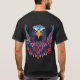 The "American Eagle" t-shirt design features a powerful and majestic eagle in mid-flight, wings spread wide, symbolizing freedom and strength. The eagle is intricately detailed, capturing its fierce gaze and sharp talons. Behind the eagle, the American flag waves proudly, with its stars and stripes adding a patriotic touch. The combination of the eagle and the flag creates a bold and dynamic visual, perfect for expressing national pride and a love for American heritage.