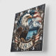 American Eagle With Mountains and Flag Background Square Wall Clock
