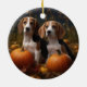 American English Foxhound Puppy Autumn Delight Ceramic Ornament
