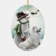 American Eskimo Christmas Ornament features an American Eskimo in a Christmas theme wearing a Santa Suit on one side and with Snow Man on the other...you will love our 2 sided Dog Breed Christmas Ornaments.