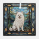 Ornament featuring an American Eskimo Dog done in a stained glass window mode.