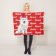 Your dog deserves a blanket of their own, especially with their name and breed on it. Fun throw to warm the season by the fireside or tossed over the sofa. An American Eskimo in Santa hat, with the dog's name patterned on a red background. TIP: Choose Personalize to change the background color to one which matches your decor if you like.