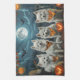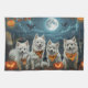 Unleash the spooky spirit with this eerie Halloween design featuring a pack of dogs under a dark, moonlit sky, surrounded by flying bats and glowing pumpkins. Perfect for those who love a touch of frightful fun with their furry friends!