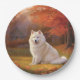 American Eskimo in Autumn Leaves Fall Inspired Paper Plates