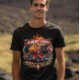This custom t shirt features An illustration of a fire truck with firefighters in front of an American flag, with the text Every Day Heroes above. symbolizing bravery and heroism,