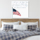 A photograph of the American flag waving in the gentle breeze. In a dark blue calligraphy font is a line from the opening paragraph from the U.S. Constitution, "We the People of these United States form a Union to establish Justice, insure Tranquility, provide Welfare, secure Liberty for ourselves". Image Copyright ©Kimberly J Tilley. zazzle.com/store/developingnature