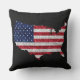 American Flag and Map Burlap Linen Rustic Jute Throw Pillow