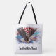 Patriotic Tote Bag - Popular beautiful powerful Flag theme with Bald eagle. The eagle is in front of the American Flag and the background is a beautiful sunset sky.