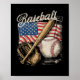 American Flag Baseball Player Bat Fan Catcher Poster