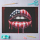 This sultry and striking piece features a close-up of glossy, bitten lips with an intricately detailed American flag design.