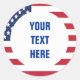 American Flag Border on round sticker - add your custom text in the center. Great for election campaign or voting slogan, or any statement you want to make with United States symbol.