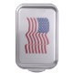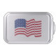 A waving American Flag decorates this patriotic cake pan. The design is from original art.