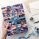This patriotic wrapping paper is covered with a collage of American flags. The festive red, white, and blue will be the hit of any patriotic celebration.