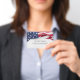 This is an American Flag design for your Patriotic Company logo. This ID badge has your corporate name on the front and your contact information on the back. The image is of the USA flag. You can change the text/font style. This is great for an American Construction Company, Military, Government, or Veteran businesses.