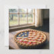 A homemade strawberry pie with an American-style crust, perfectly placed on a rustic wooden table by the farmhouse window, pays tribute to the spirit of patriotism/