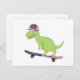 A cute illustration of a green Tyrannosaurus Rex dinosaur skateboarding with an American flag hat and skateboard. Ideal birthday gift, nursery decor, kids room art, home decor, back to school or any other special occasion.